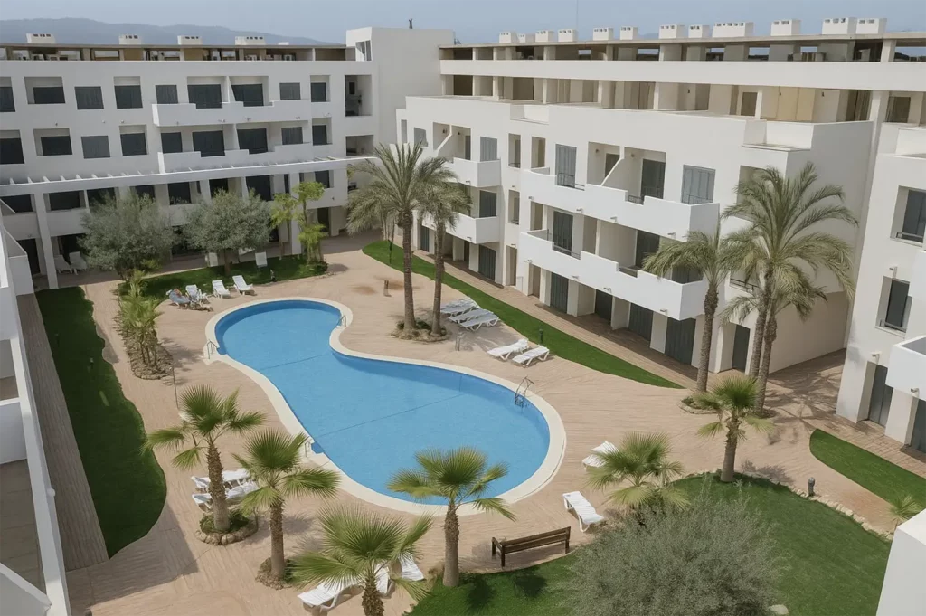 UNIQUE Vera Beach está compuesto por 7 bloques de apartamentos de 1, 2 y 3 dormitorios con amplias terrazas. Asimismo, dispone de garaje soterrado. Hay apartamentos en planta tercera que cuentan con un amplio solárium. Todos ellos equipados con aire acondicionado, wifi, cocina completa con lavavajillas, microondas, horno y lavadora. Los apartamentos están completamente amueblados.